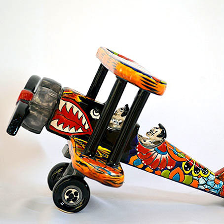 Experience a touch of whimsy with the Avioneta Figurine, a playful and colorful representation of adventure. This handcrafted, one-of-a-kind ceramic airplane boasts vibrant, intricate designs, making it the perfect gift for aviation enthusiasts or as a standout piece in any home decor.