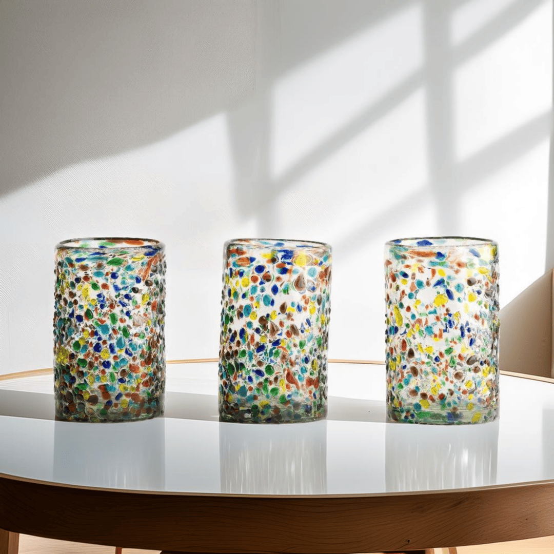 Infuse your everyday moments with joy using the Cup Confitado. These cups showcase a vibrant confetti-like design, adding personality to your dining experience.