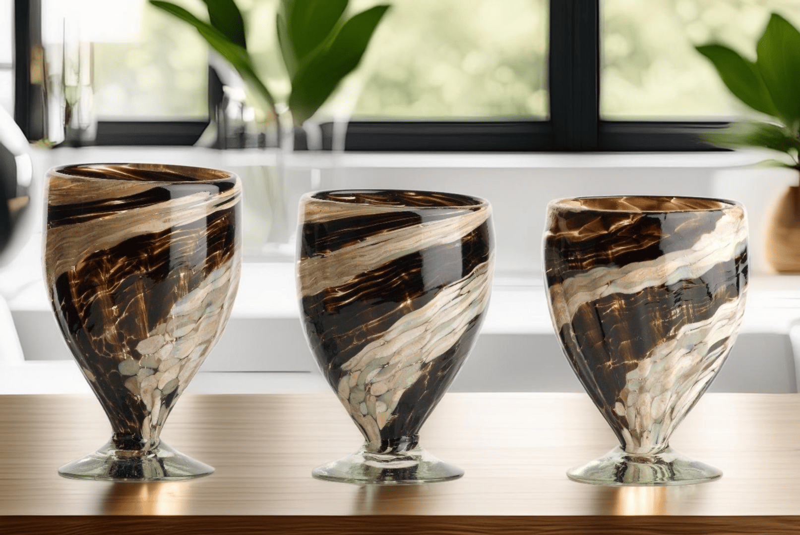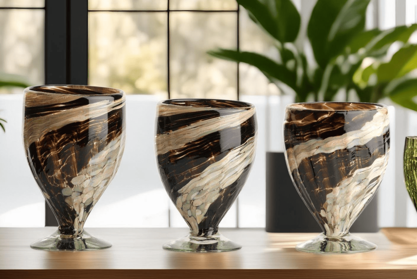 Enhance your gatherings with these handcrafted sangria goblets featuring rich chocolate swirls. Perfect for sangria, cocktails, or as décor, each unique piece is crafted by Mexican artisans, blending elegance with cultural artistry.
