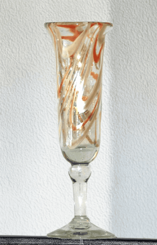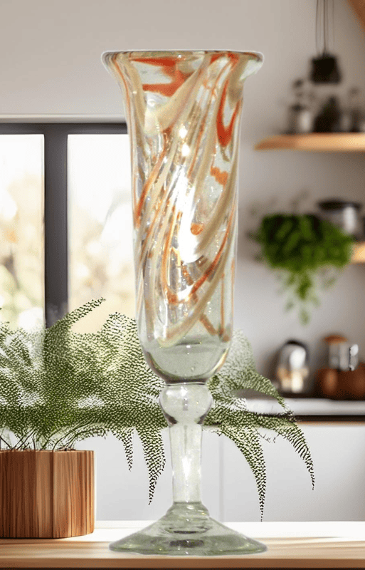 Celebrate in style with this handcrafted Orange Flute Glass, featuring a unique swirling design.