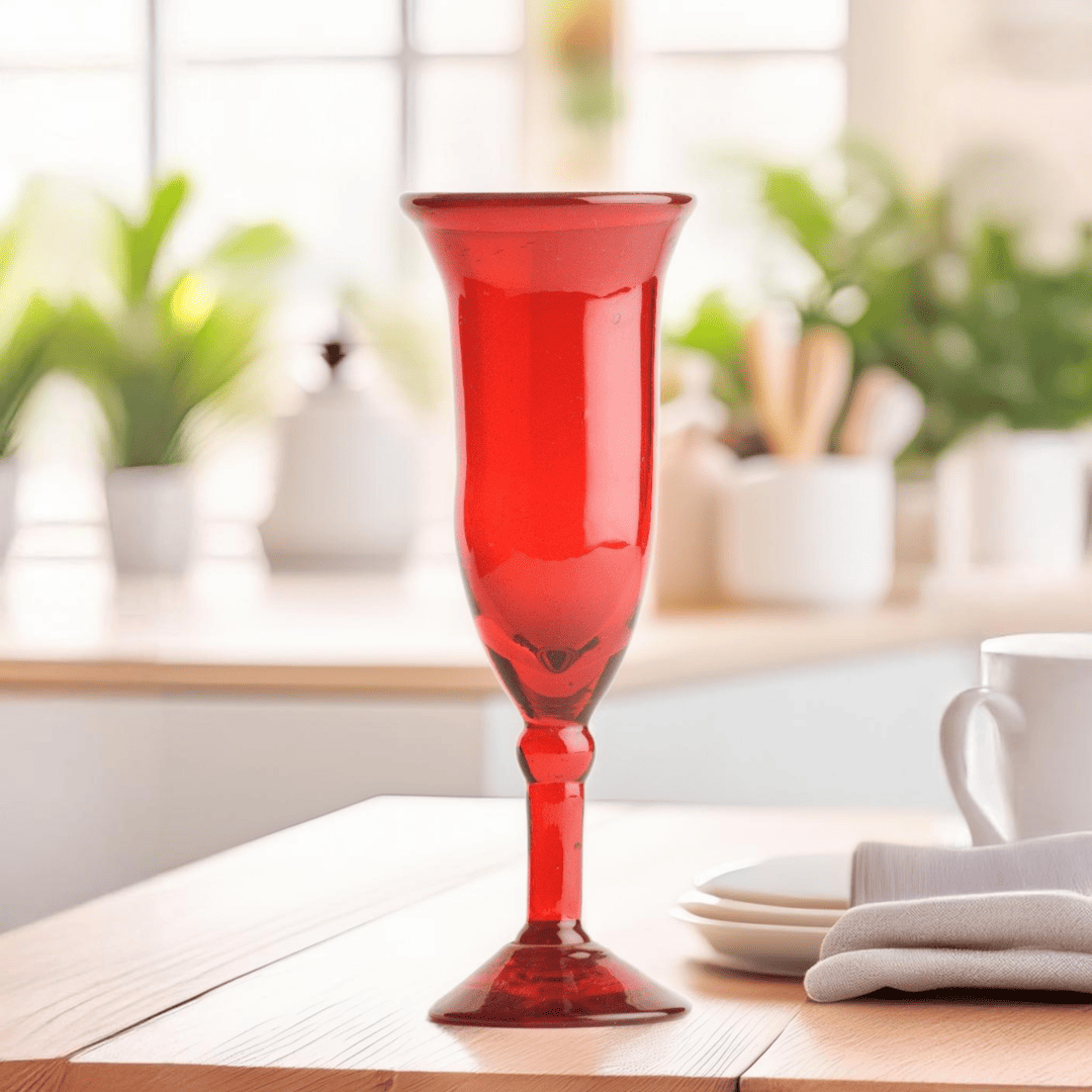 Elevate your table setting with the Glass Flauta Red. With its elegant, elongated design and bold red hue, this fluted glass adds sophistication to your celebrations and everyday dining.