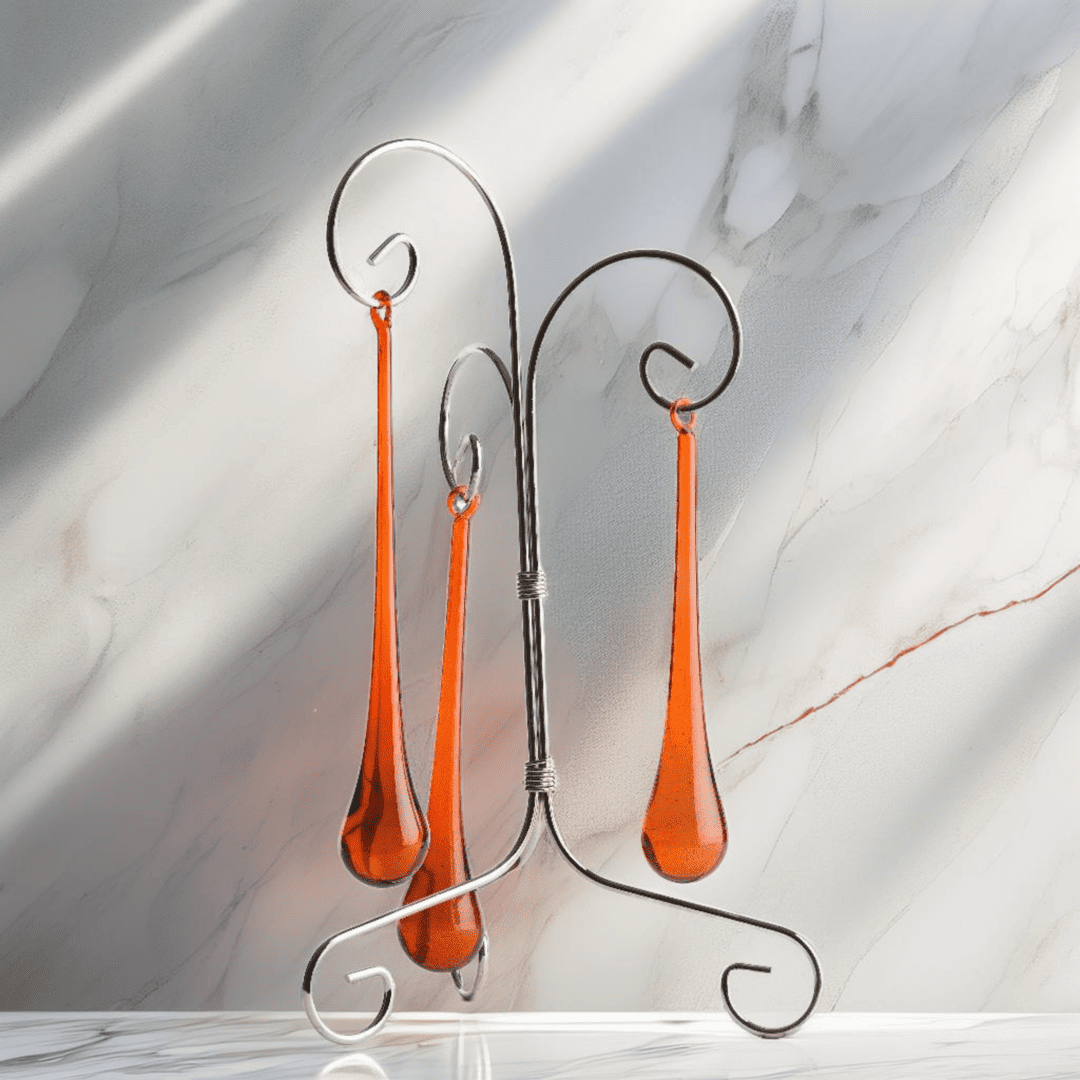 The Orange Crystal Tears captivate with their bold color and striking design. These handcrafted glass pieces exude warmth and elegance, perfect for enhancing any room.